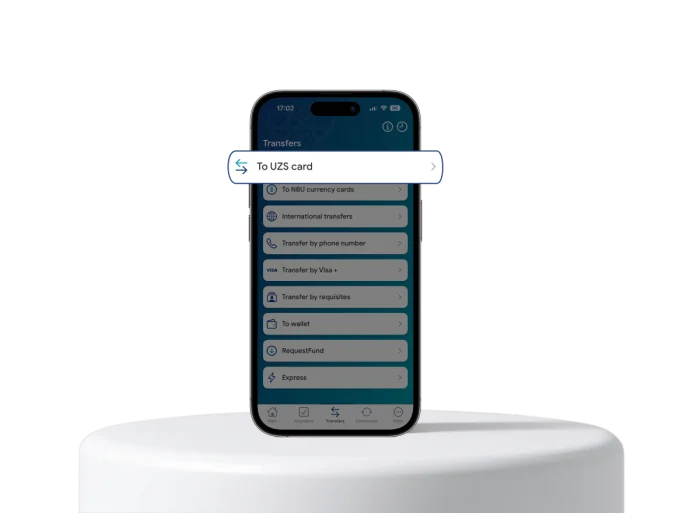 International money transfers or transfers from card to card within the republic. Choose what interests you now